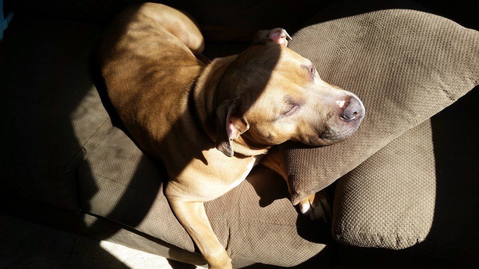 In the four years he has been with us, Moose has taught me so much about his amazing breed. Although I always thought they were unfairly demonized, I never knew how beautiful pit bulls really were until I became his mother. His love for my husband and me is quite clear, watching him creep across the couch and floor to sleep in patches of sun is still hysterical to me, and he has never once displayed anything but patience with my younger brother and my baby nephews.
