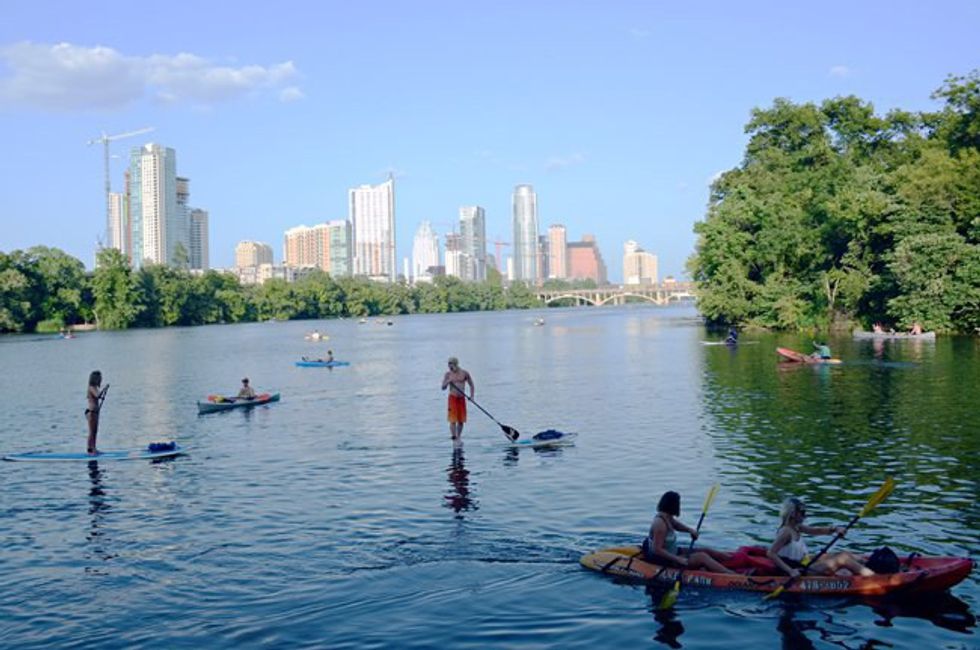 Lady Bird Lake is one of the best places to look over the Austin skyline. There is paddle boarding, kayaking and canoeing, and if you get hot, you can jump in the water to cool off.