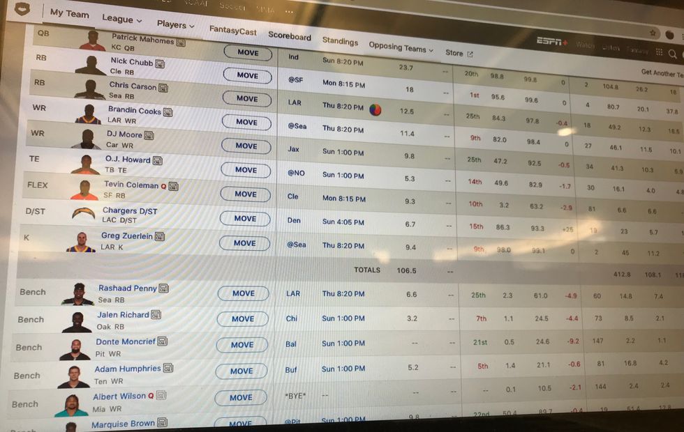 For many, this may be the best part of football season. You don't have to have an affiliation or liking for any team to have a reason to keep up. In a sense, when you play fantasy football, the whole league is your team. For some, it's simply gives a reason to tune in and pay attention on Sundays. For others, though, its a passion. Whether you're casually keeping up with your players in the living room, or live streaming six games at a time, calculating how many field goals you need the Broncos' kicker to make for you to beat your best friend, Fantasy is just another reason to get excited about football season rolling around this year.