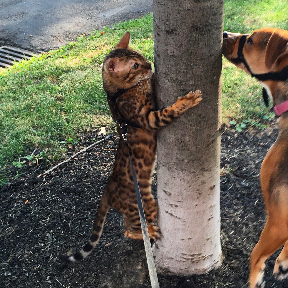 I don’t care how crazy I may look, Bengals love the outdoors. Since they are such cool, exotic looking cats I would never let him outside without a leash in fear of someone snatching him up. But regardless he loves to be outside on a leash. We got him a retractable one so he has lots of room to run and chase birds and climb the trees. Only put your cat on a harness, they are so smart and sneaky so they could slip out of a normal collar.