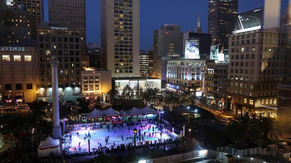 Union Square at Christmas time is gorgeous. There are shops around every corner! At Christmas, they set up an ice skating rink and a giant Christmas Tree. There is a giant Macy's, Saks Fifth Avenue, Tiffany and Co, and more.