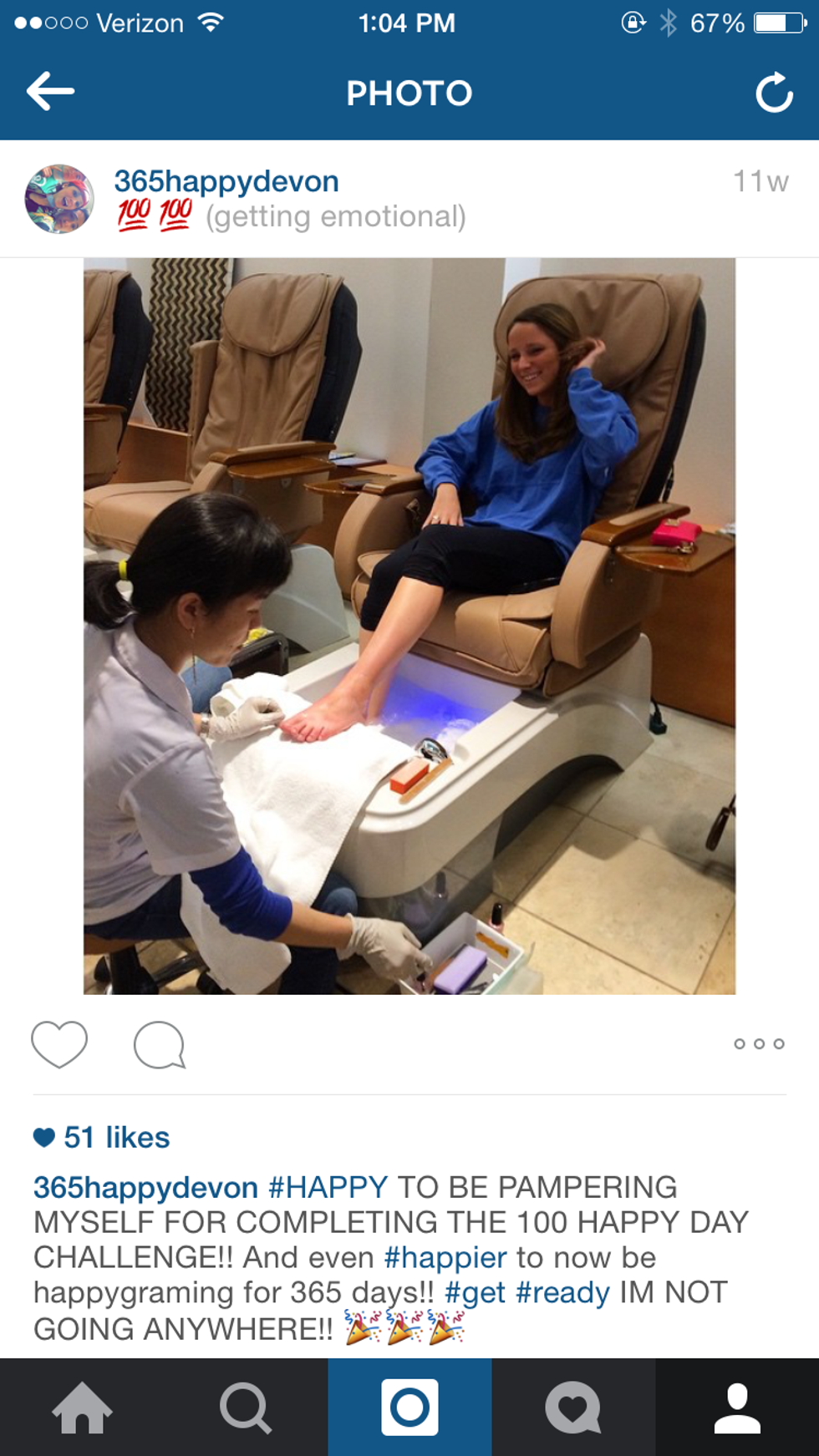 Let me first start off by saying I wasn’t always a believer in the “100 Happy Day Movement." But it was not long after I became aware of the purpose of these accounts by reading about the 100 Happy Day Foundation that I joined the movement myself. @100happydevon was born and I have #noregrets thus far.