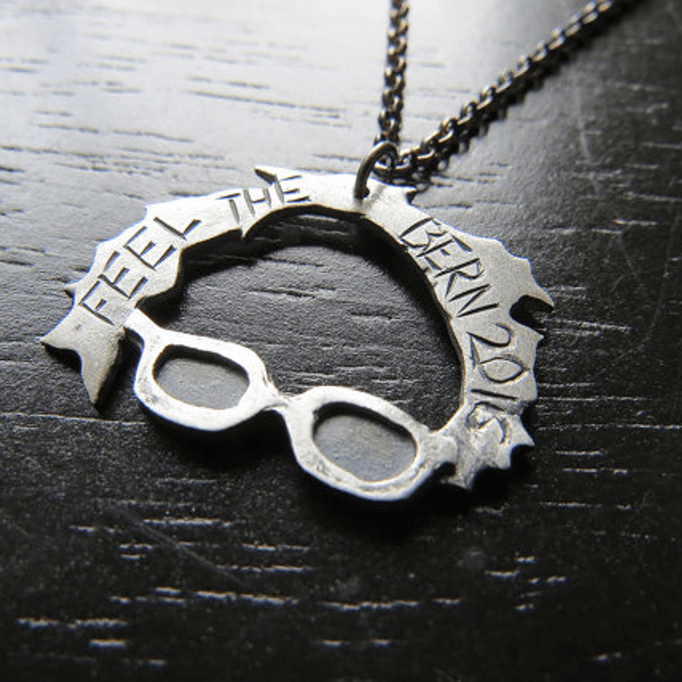 Bernie Sanders is a celebrity in Vermont. Every store has some kind of merchandise involving him, whether they are shot glasses, clothing, coffee mugs, stickers, jewelry, or pictures You'd be hard-pressed to go shopping without running across something that incorporates him. The people just love their senator.