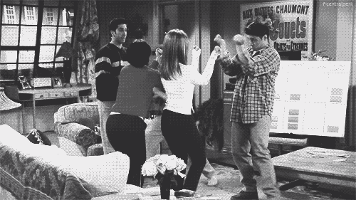 No question why this show is called Friends. The way the six friends support and stand by each other to support during heartbreak or to celebrate during their successes, is a testament to being a good friend. They spend holidays with each other. They meet each others' families. They take care of each others' children. They live life with one another by their side. While boyfriends, girlfriends, wives, and fiances come and go, they stay together.