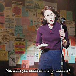 Before Joel leaves Midge, we learn that he himself is an amateur comedian — and he’s not funny. Like, at all. He steals his jokes from Bob Newhard, and he seems to ignore Midge’s sound advice. When he leaves her, Midge shows up at the comedy club that he’d flopped at earlier in the night. And she (albeit, drunkenly) wins her audience over with an array of jokes — all on the spot. No writing, no planning, no stealing. Unlike her husband, Midge is talented, original, and charismatic.