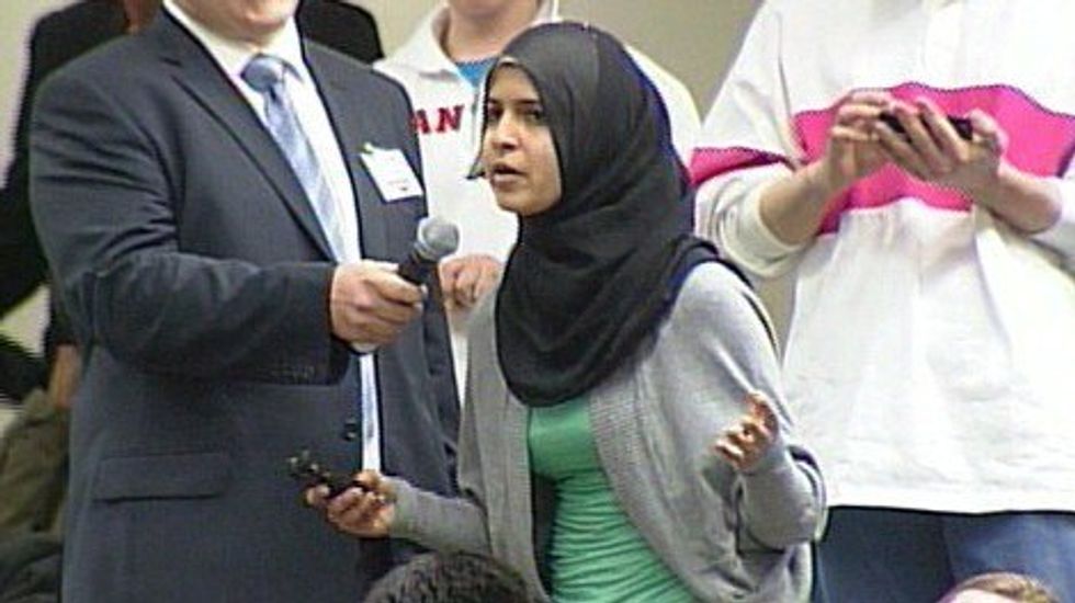 FATIMA AL-DHAHER: On September 14, 2001, you said that America should invade Muslim countries and convert them to Christianity. You also said that all the Muslims should boycott all the airlines. When asked what alternative modes of transportation were, you suggested flying carpet. Question, first of all, as a seventeen-year-old student of this university, Muslim, should I be converted to Christianity? Second of all, since I don't have a magic carpet, what other modes do you suggest?COULTER: First, you dropped a line from the first quote. It was "invade all countries, kill their leaders, and convert them to Christianity." And, you know, by the way, this shows, I thought it was just, you know, American public schools that produced ignorant people. This is what America has done, after World War II, after the Korean War. After we won in World War II, the emperor went to MacArthur and said, "Okay, we're ready to convert." And MacArthur said, "Well, actually, we don't convert people forcibly." Also, as he's described, he said he didn't know whether to convert them to Protestantism or Catholicism. But he put out the call for Christian missionaries to come to Japan, and they poured in. And, you don't convert people forcibly, but missionaries have been operating throughout Japan for years, and we certainly have religious freedom in Japan, and I would add we haven't heard a peep out of them.CROWD: Answer the question, answer the question!