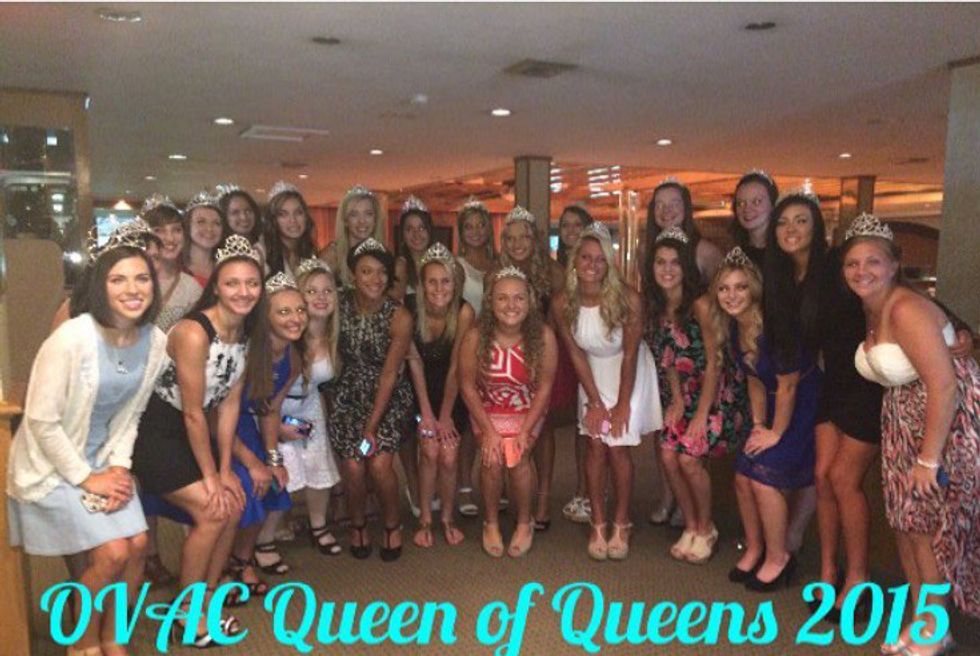 The OVAC Queen of Queens pageant wasn't much to my concern until my senior year of high school. I'd actually never even been to the annual pageant until I was in it. The pageant was a part of the Rudy Mumley OVAC All Star Football Classic. Every year in July, qualified players from every school in the Ohio valley, are chosen to play one last high school football game. The players are split into two teams: Ohio and West Virginia, since the Ohio valley lies on the border of the two states. There weren't just football players though; there were cheerleaders, band members, coaches, honorees, and the queens.