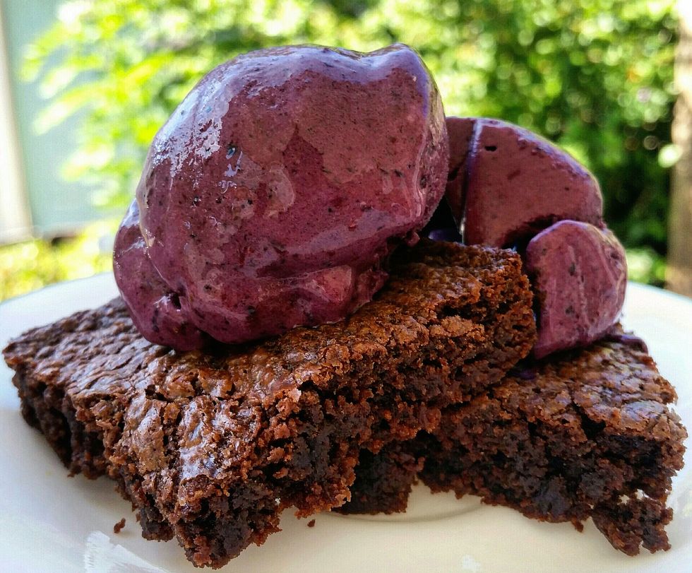 Three-ingredient Nutella brownies with three-ingredient blackberry ice cream,