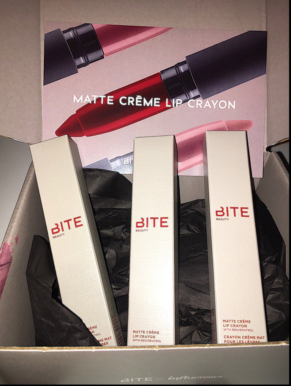When I realized that the box consisted of three Bite Beauty Matte Creme Lip Crayon lipsticks, I was so excited. I had heard of Bite Beauty from Sephora. I swatched the lipsticks on my hand to just get a feel for the colors.