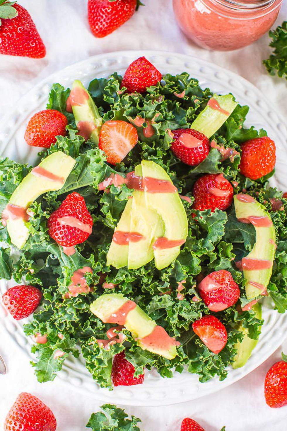 1. Strawberry, Avocado, and Kale Salad with a Strawberry-Apple Cider Vinaigrette