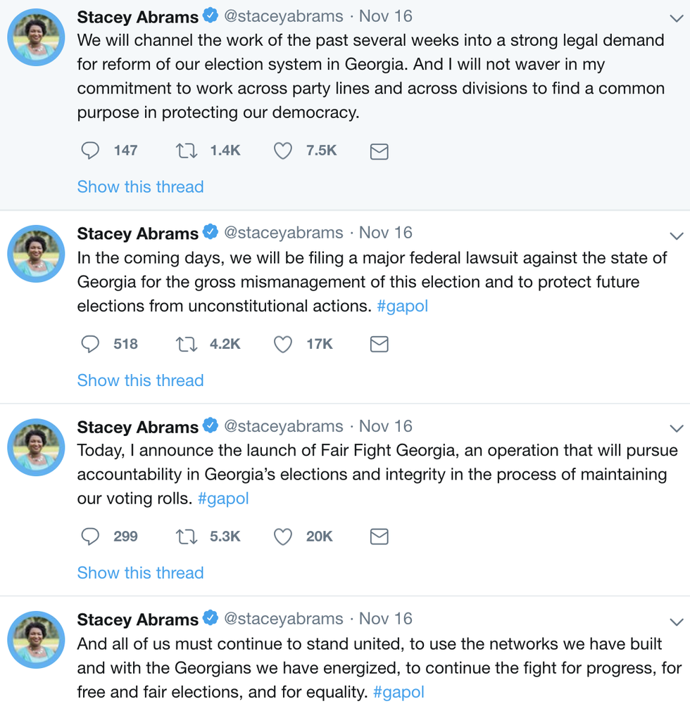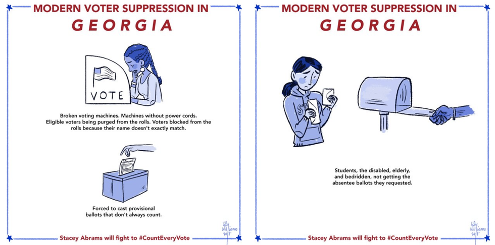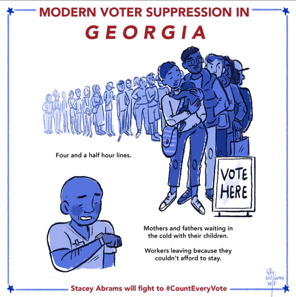 Stacey Abrams along with Andrew Gillum made it very clear to voters that your vote matters. Voter suppression is real. It was shown in this election. It's specifically saying in Georgia and South Florida that voter suppression is real. Such diverse communities having trouble voting. It's odd. Nothing is confirmed about this theory but major advocacy is being presented online and in the news about voter suppression.