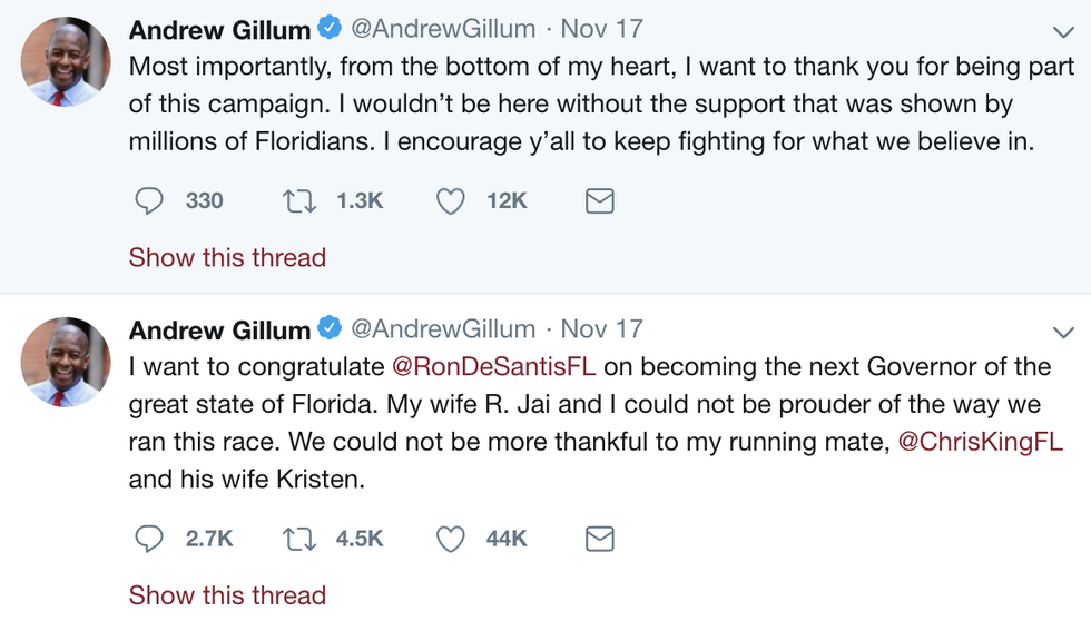 For Andrew Gillum and Ron Desantis, this meant a recount for them as well. Andrew Gillum, however, did concede, but once a recount is in place and then the candidate can un-concede.