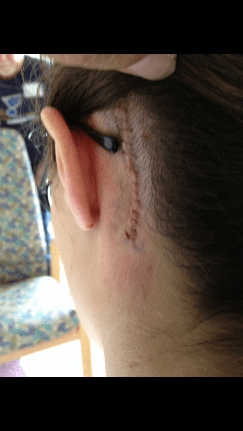 A doctor, who looked like he could have been on Grey's Anatomy, told me I could call him Tom. He took one look at the oozing, three-inch scar behind my ear and said, "Yup, that's infected."