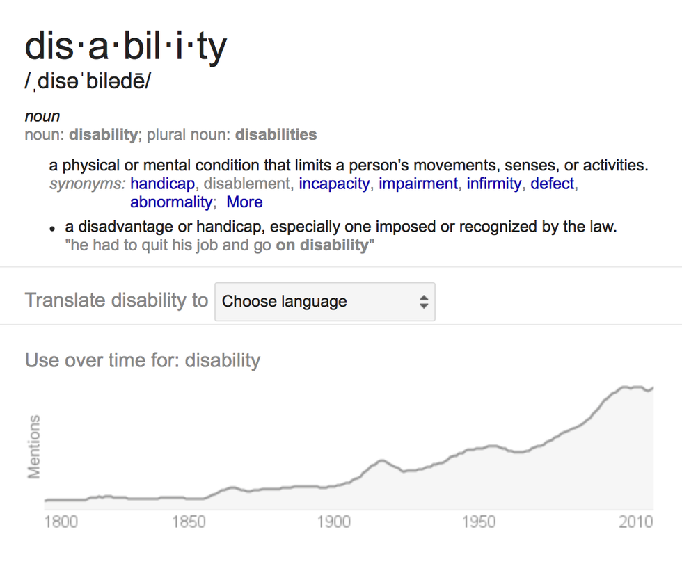 And, the more I think about it, the more I realize the extent to which her words are true. If people’s actions are not “limited” or “disadvantaged” (as according to the definition of disability above), do they really have “disabilities”?