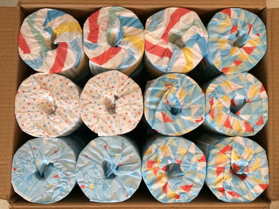 For all of your TP needs, see if you can opt for toliet paper that is partially or completely made of recycled paper or wrapped in cardboard/paper packaging. If you're not quite adventurous enough to try a bidet or can't easily find rolls wrapped recycled paper, you can likely recycle the plastic packaging with other thin plastics recycling in your area.