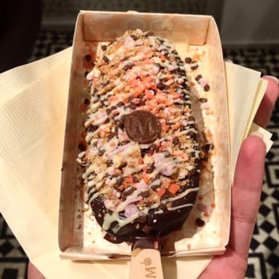 Everyone loves Magnum Bars, especially on a hot day. The ice cream is reasonably priced, and absolutely worth the social media post. At Magnum new York, you choose a chocolate or vanilla base for your ice cream, and you have the ability to top it with whatever you wish. You can add a hard white, milk, or dark chocolate base, and a various array of toppings including butternut crunch, marshmallows, and granola.
