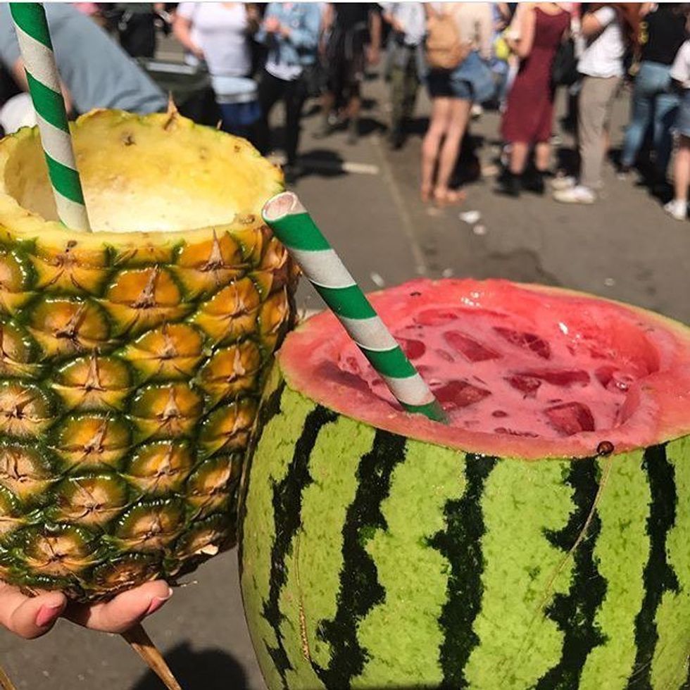 When you purchase a drink at Joe's Juice, you receive it IN the fruit you ordered. Their motto, "just juice, no cups" is as accurate as can be. They cut out a fresh pineapple, orange, or even watermelon and fill it with fresh squeezed juice from the insides. It is the best fresh juice you can get. You can also purchase their drinks at Smorgasburg in Williamsburg during the summer.