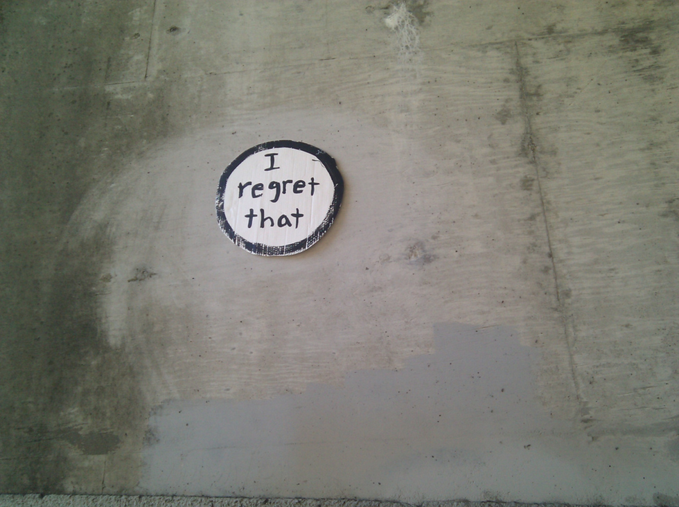 If I were to try and solve the impossible problem at hand, I would just have to say that everyone has regret. Maybe it’s not healthy or for the best, but we all have it and nobody is alone in their insecurities. You scratch the surface of anyone and we all have some sort of cross to bear, no matter how big or small. As pointless as regret is, we all have to face it, but we don’t have to let it overtake us because we think it makes us weak or stupid. I try to remember that, even though you can’t always tell by looking, everyone has something going on that they are not sharing. You just have to worry about yourself, and when you feel the regret coming on, you can use it as power instead of a personal weakness, because you have the power to talk yourself down. You can assess why you feel regret, and pinpoint what happened to make you regret it. You can just use the aspect of a situation that made you feel the regret, and try something different next time, if any of this makes any sense. Long story short, we’re all human. Regret isn’t rare and it doesn’t make you stupid or weird. It’s pointless, that is, unless we can choose to learn from it.