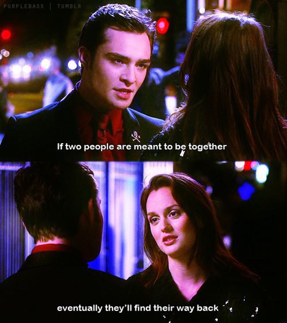 1. "If two people were meant to be together, eventually they'll find their way back." -Chuck Bass