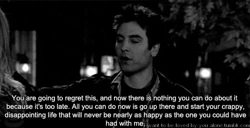 2. Ted is such a hopeless romantic and wants to find the one he will spend the rest of his life with, even if that means shutting down the women he knows isn't the one for him. What's the point of being with someone who you have to settle for? I am also a hopeless romantic and I believe in finding "the one" (even though I sometimes act like it doesn't exist). Why waste your time on people who you already know aren't the one for you?