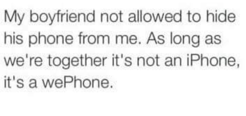 Ladies and gentlemen, it is not normal for your partner to hide their phone. Countless times I’ve had someone flip the script on me and made me feel like the bad guy. “You should trust me.” “Maybe you’re worried about my phone because you have something to hide in yours.” These are a couple of the countless excuses I’ve heard. They are all BS. A confident partner who has nothing to hide will be proud and willing to show you their phone to make you feel stupid for even questioning them. I’d rather be proven wrong that way than having a shady partner.