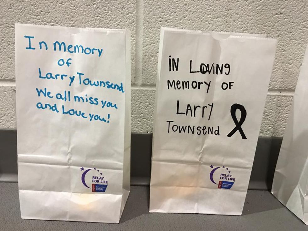 Remember: As the sunset and the lights dimmed we took time to honor those who have been touched by cancer and remember those lost. Around the gym sat hundreds of luminaria, which are bags filled with sand and in this case fake candles inside. Each bag represents a person who has been affected by cancer. Each bag has a story. We walked in silence, together, to remember.
