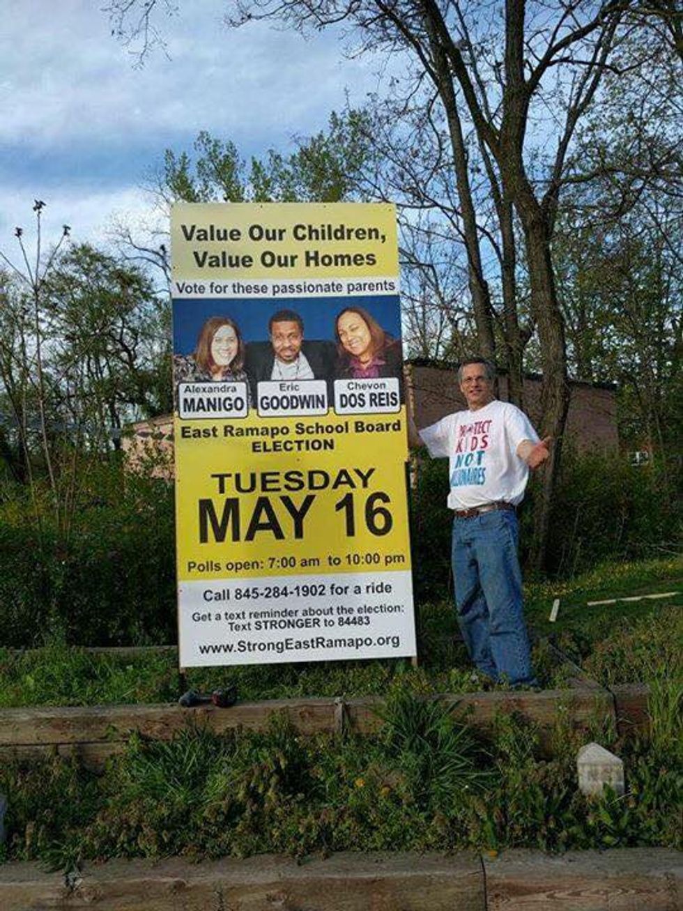 The religious group took over since 2005. Since then, we haven't been able to achieve an equal amount of representation in the school board, even though we try, and we try really hard. This past March, along with other community members of the public schools we canvassed around the town encouraging people to get out and vote for the public school parents running for seats in May. We still lost.