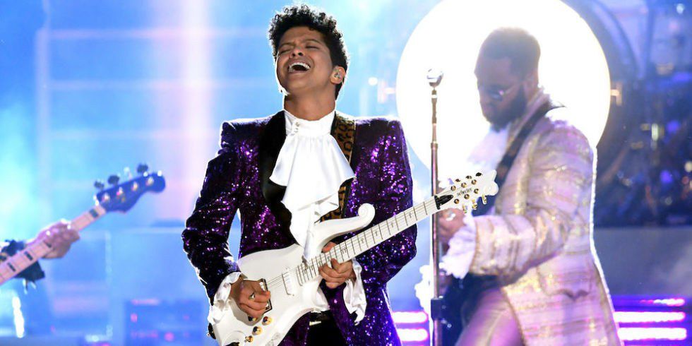 "Uptown Funk" singer Bruno Mars paid homage to Prince with a purple suit and the iconic eyeliner. Mars impressed with not only his vocals, but also a killer guitar solo as part of his cover of "Let's Go Crazy."