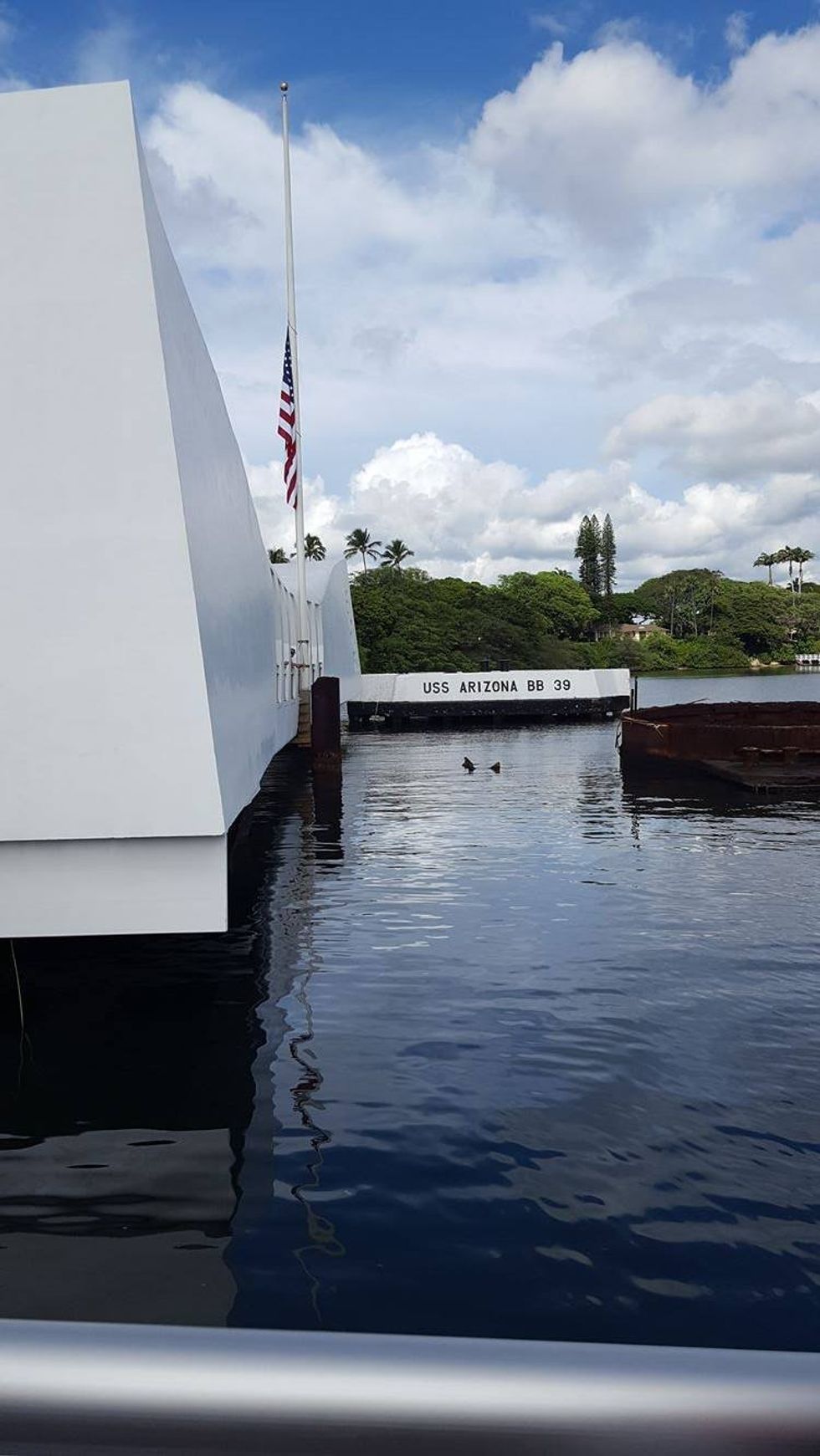 I grabbed the buttons, my uniform, my horn, and loaded the bus for the commute to the harbor. Before we performed, we had a chance to tour the memorials. We observed plaques with the names of every sea craft lost during the invasion, with names of the deceased aboard them listed underneath. There were flower leis carefully placed on some from visiting family members coming to remember the ones they lost in the senseless attack.