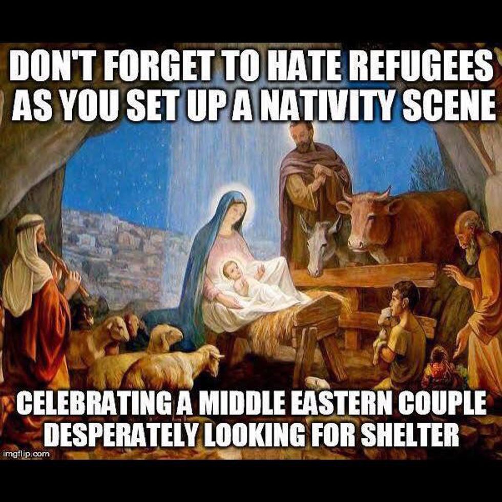 Does this situation sound familiar to anyone? People risking their lives because their only hope is to travel dangerously for days, or even longer, in search of a better life? Not being welcomed anywhere? If it doesn't resonate with the Syrian refugee crisis to you, then I don't think you understand what Christmas is about. Jesus Christ and his family were Middle Eastern, just like the Syrian refugees that many Christians would love to turn away. It is pretty disheartening to think that if Jesus were to come again today, people wouldn't want to let him or his mother into this country...many of those people being the same exact ones who worship him every Sunday morning. Syrians need and deserve safety, just like Mary, Joseph and Jesus did.