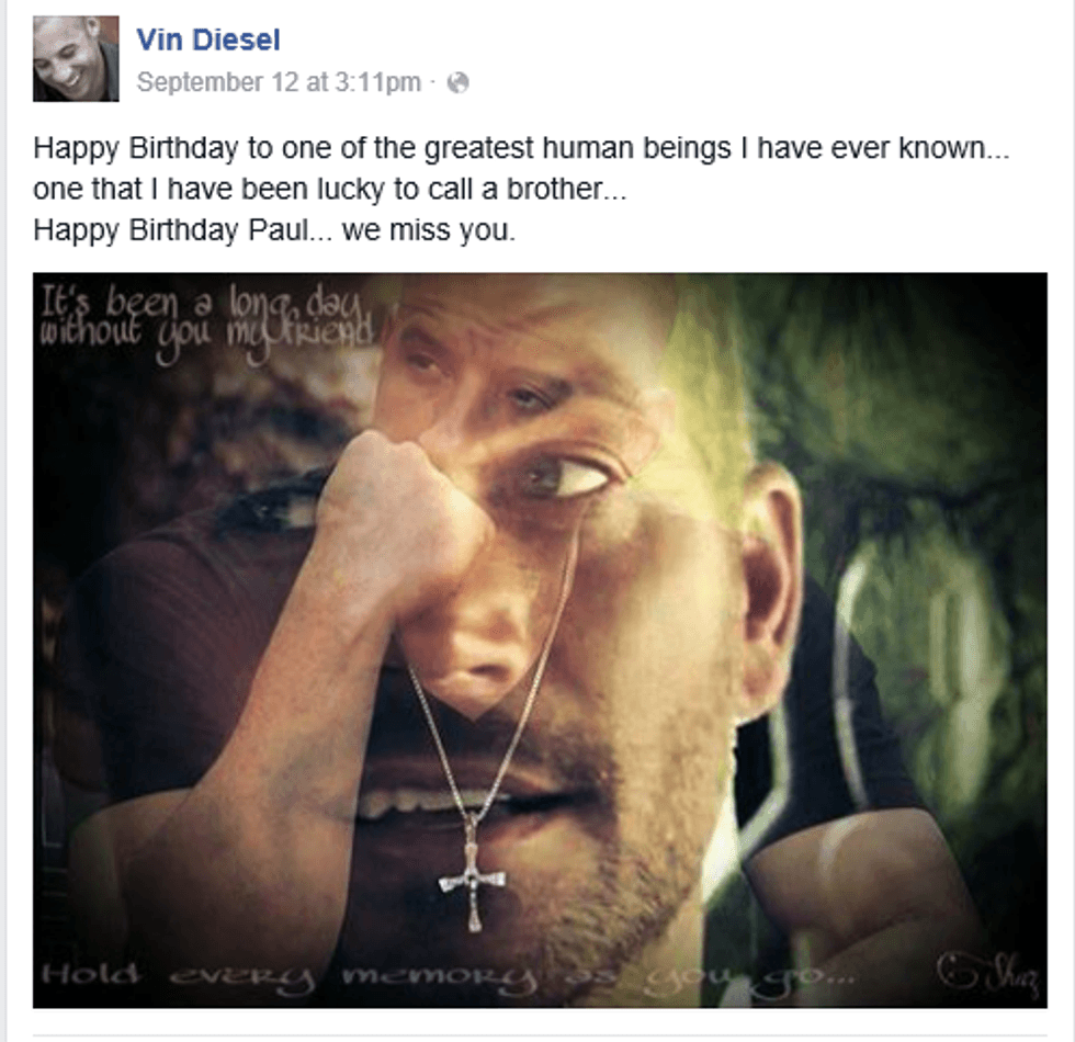 Vin Diesel made a posting with this touching photo on Facebook: