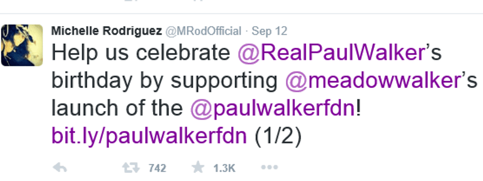 Michelle Rodriguez also spread the word via Twitter tweeting: