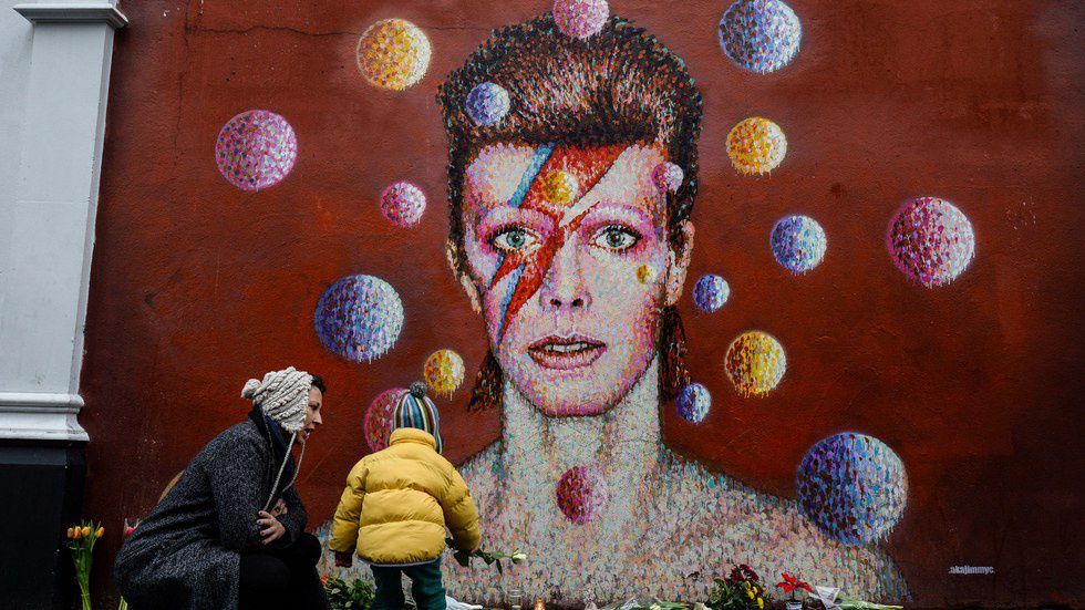 While touring in the United States, Bowie created his next persona, Aladdin Sane. Bowie described the album as "Ziggy goes to America." Aladdin is the red-haired, skeletal version of Bowie with an orange lightning bolt on his face. It's how he was portrayed in the famous mural in Bowie's hometown, Brixton.