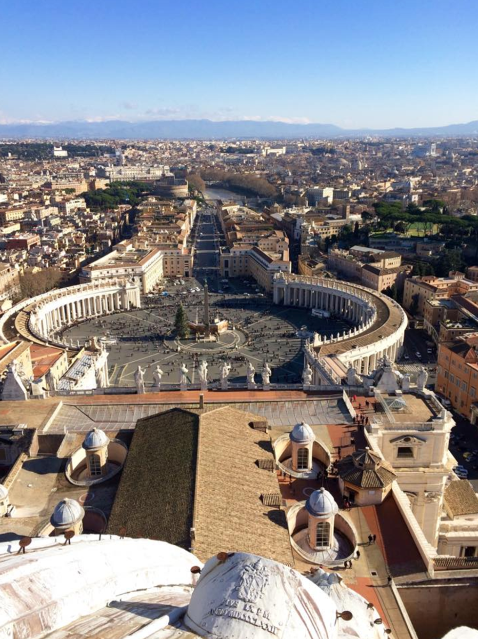We spent a day touring the Vatican and St. Peter's. Vatican City is the world's smallest country, only .2 square miles. We also had the opportunity to hear the pope speak, a once in a lifetime opportunity. One of my favorite parts of Rome was climbing up to the top of the Basilica.