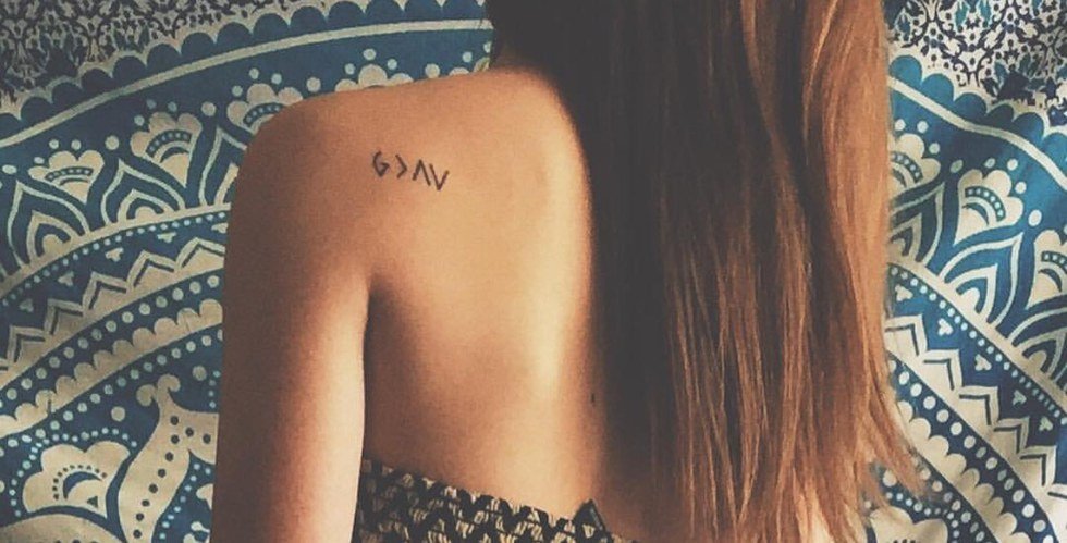 My tattoo on my shoulder is four symbols that means "God is greater than the ups and downs."