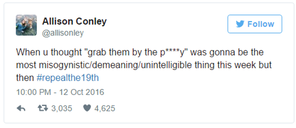 I'll keep this article short and sweet because I am sure everyone is sick of politics this election season. After reading about Trump supporters tweeting "#repealthe19th", I was about to put my head through a wall. I was insanely infuriated.