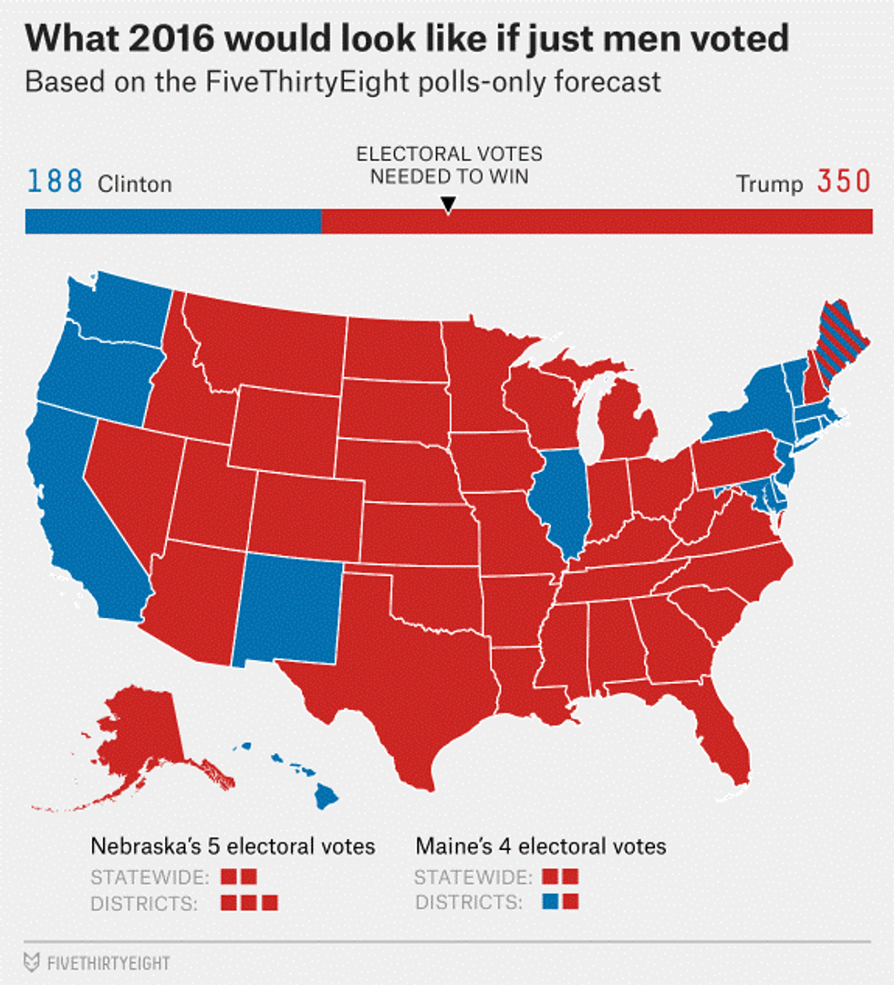 This Tuesday, polls were released showing who would become our beloved Commander-in-Chief if only the males in our country were to vote, versus only females. The male result is pictured below.