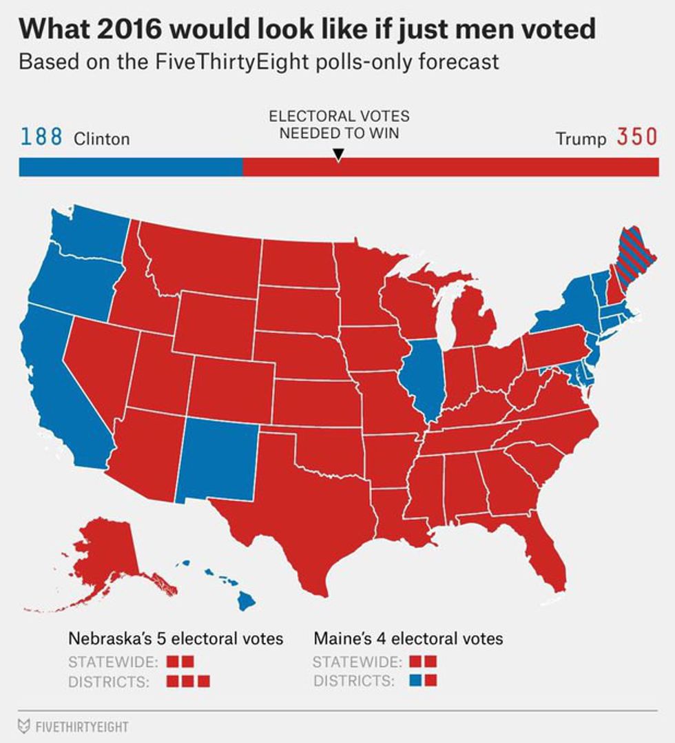 Recently on twitter a hashtag became popular called repeal the 19th, as in the 19th Amendment. This is the Amendment that gave women the right to vote less than one-hundred years ago. The reason why this hashtag came about was because a chart came out saying if only men voted in the 2016 election then Donald Trump would win.