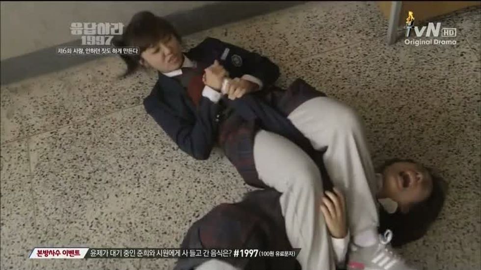 Meet the group of friends who live in Busan, South Korea. The story takes place in 1997, but progresses into early 2000's as they embark into college and working life. Then around 2013, when the drama aired, the first scene starts with all of them at the high school reunion, and there is an engagement and a married couple. All Reply series begin like this; the goal of the viewer of the drama is to guess which guy the lead girl (in this case, the girl in the middle named Shi Won) ends up with.