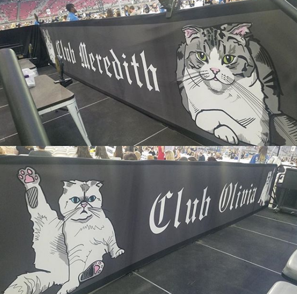 Club Olivia and Club Meredith are new to this tour as well. This is where her family, friends and celebrities will be seated during the show. Some of the people spotted in Club Meredith or Club Olivia so far have been Taylor's mom, dad, her boyfriend Joe, Rebel Wilson and so many more! Some lucky fans may get upgraded to these clubs as well.