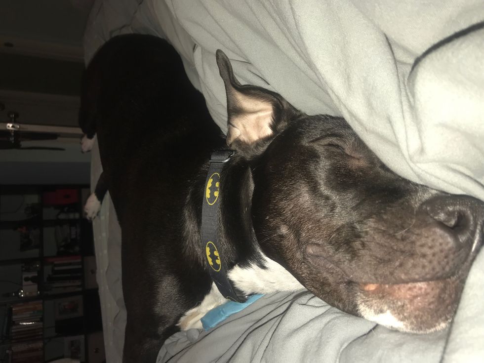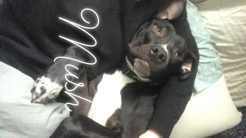 Because I had owned my dog since he was a puppy, I had to work with this one. I had to train an almost year old dog. I had given him enough love every day to slowly ease him out of his shell. Month by month he'd move closer to me on the bed. He started eating only when he was hungry. He finally reached a healthy weight.