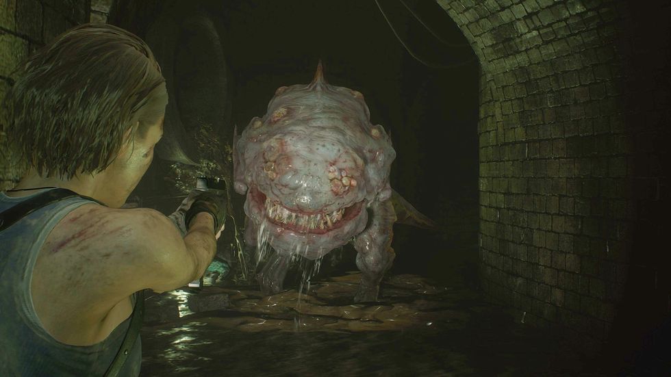 The big guy itself, Nemesis, is a force to be wrecking. He was created to capture and destroy members of S.T.A.R.S. He is just as terrifying as I remembered him back in my youthful days. When he breaks through a wall, I was still jumping. Those moments where he jumps from a building and lands in front of you, it was still horrifying. The music that plays when he appears, it's very unnerving. Although they did change him up significantly since the original, he is still the Nemesis I remember.