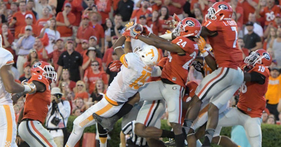 On Saturday, with ten seconds left on the clock, Tennessee had to make a decision. They could lay down and give up, and they could accept that Georgia had won the game, but head coach Butch Jones had a feeling in his gut that Tennessee could win, and boy... Tennessee won. Josh Dobbs threw a Hail Mary with only four seconds left, and Jauan Jennings had angels behind him as he soared in the air and caught the ball as time ran out. Honest to God, it's something you have to see to believe.