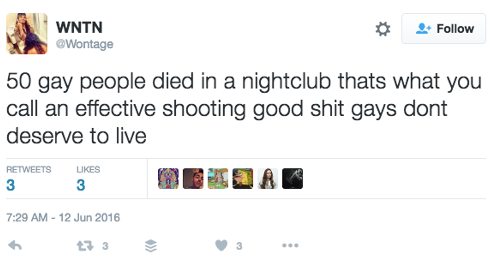 Some of the things that people are posting on social media about the attack on the gay nightclub are making me sick to my stomach. People are saying that the shooting was OK, because it was on gays and not "innocent" people. My stomach has been turning in knots, to the point where it is bringing me to tears about how cruel society is. People have been calling the gays pervs.