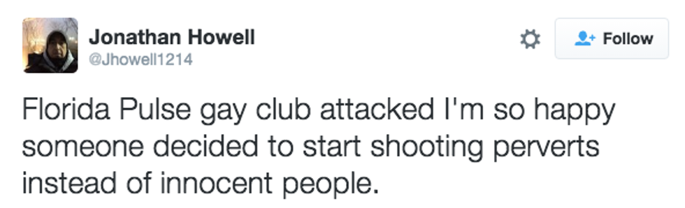 It has dawned on me that people don't have the brain capacity to understand things, and that people will automatically judge for no reason. Fifty lives should not have been lost, and my prayers are with all of the families who have been affected by this horrible crime. Please stop judging gays, we are all human and need to learn to love and accept no matter what.