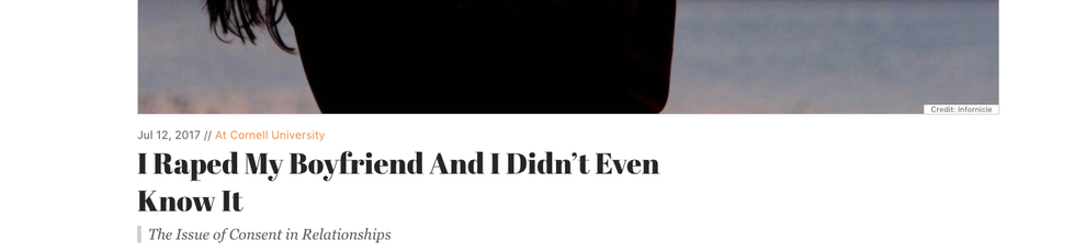 I want to start by saying how dare you use rape as clickbait. I write for Odyssey too, and I have been creating content for sources ranging from mission organizations to book blogs and I know how to create a clickable title, too. What you won't see me doing it using the word RAPE in order to garner attention. Sure, topics of sexual assault and rape should be discussed and clickbait titles can drive more viewers to see a post that truly needs to be seen. But you did not educate (I will get more into this later) and your title is using the accusation of a female raping a male (something I will also get into later) in order to garner page views. Further, I would also like to say how dare Odyssey Headquarters cater to this need for shares and page views by sharing this article on their main page (though they have now removed it). Did the person in charge of sharing articles even read this first? Or is it just customary to share what you know people will click on?