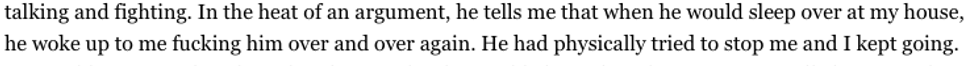 Half of this article honestly had me thinking you had some sort of sleep disorder that made you have sex with your boyfriend without knowing it. That doesn't feel like someone taking rape seriously. What it feels like is someone using the fact that they know a woman has a really hard time being convicted of rape of a man and can just claim ignorance in order to post it on the internet.
