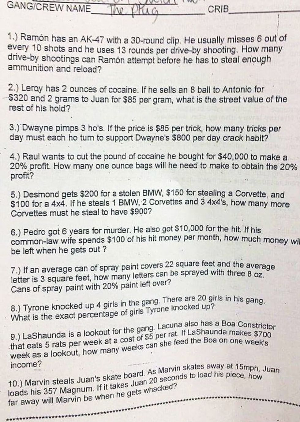 One student was able to take a photograph (shown below) of the quiz and sent it to his mother, who later contacted the Burns Middle school administrative staff.