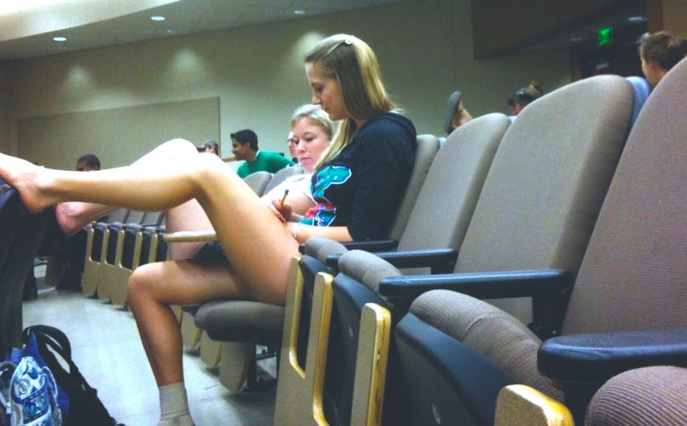 Class isn't a space where it’s necessary to put on your nicest clothes and dress to impress. That 500 person lecture hall wouldn’t even miss you if you weren’t there- sorry to break it to you. No one is even going to look at what you're wearing; you could show up with all of your clothes inside out and backwards.