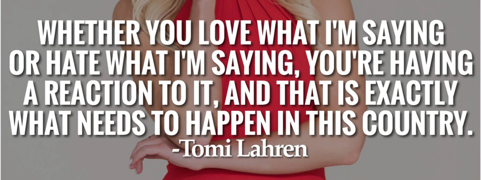 As many of you may know, women all over the globe took to the streets on Saturday to protest in the Women's March. One of the many marches took place in Washington D.C. as you may also know. Of course, everyone's favorite label-hating Millennial Tomi Lahren had something to say about these marches in her latest "Final Thoughts" segment. You can find the full video here. I'd like to respond to Tomi's thoughts because just as she has a constitutional right to express her opinion, I have the right to express mine.